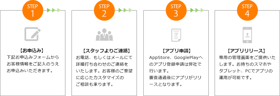 アプリをリリースしたらソーシャルメディアで宣伝したり、社内スタッフへの告知、取引へメールする際に署名につけるなど、 アプリのプロモーションに力を入れて新規ユーザーを増やしていきましょう!