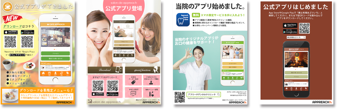 「アプリーチ」は新規顧客の獲得、リピーター率の向上など売上アップに繋がるファクターを取り入れた集客アプリです。