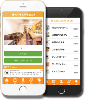 スタンプカードやクーポンなど、再来店を促進させる機能で来店率をアップ! 飲食店にはもってこい!